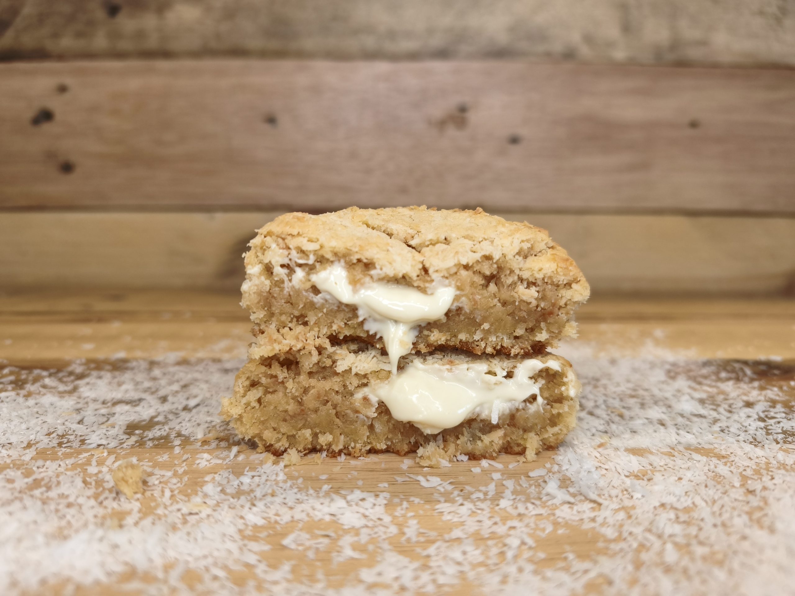 BASE VANILLE, NOIX DE COCO RÂPÉE TORRÉFIÉE, COEUR DE CHOCOLAT BLANC FONDANT