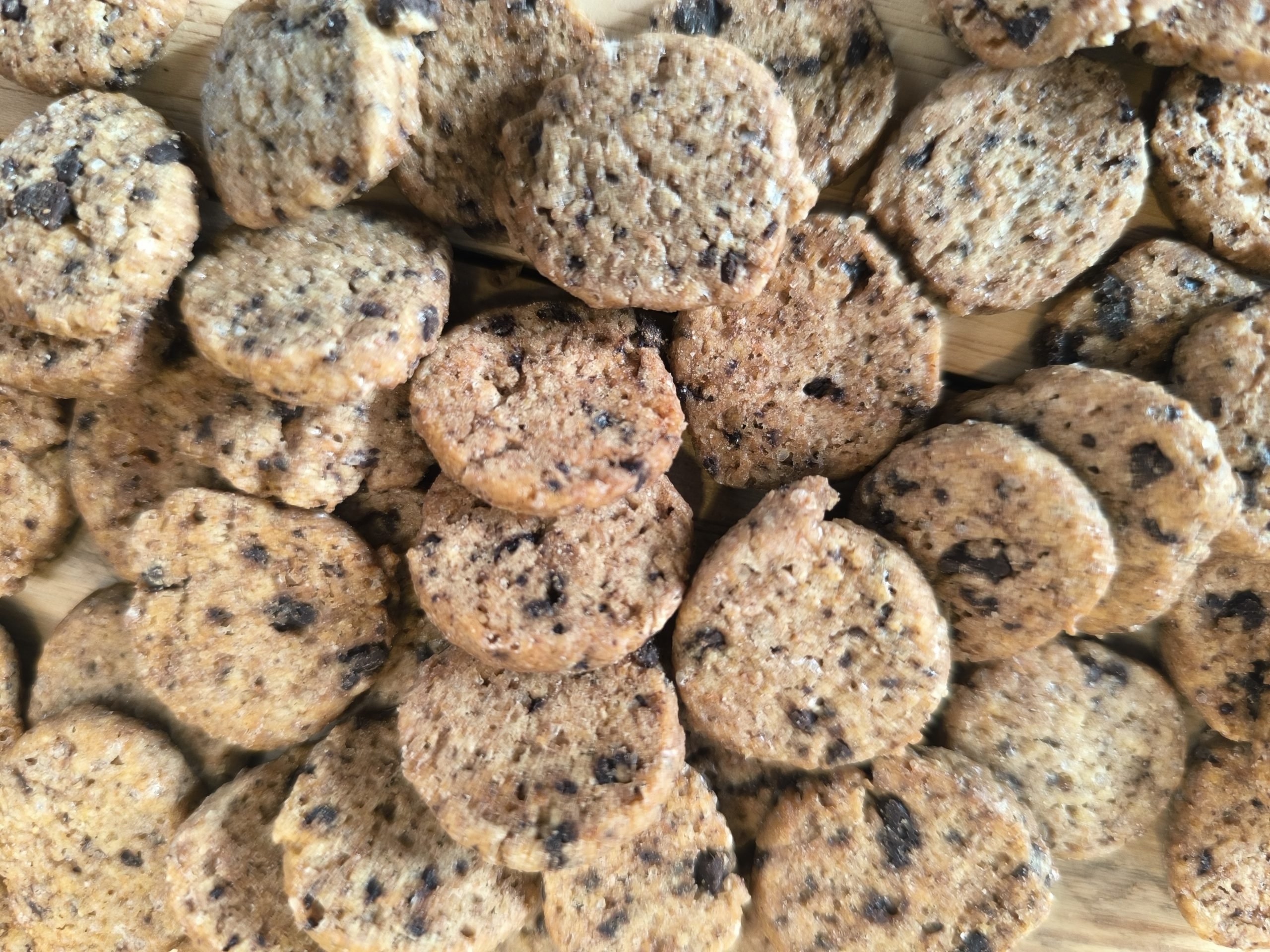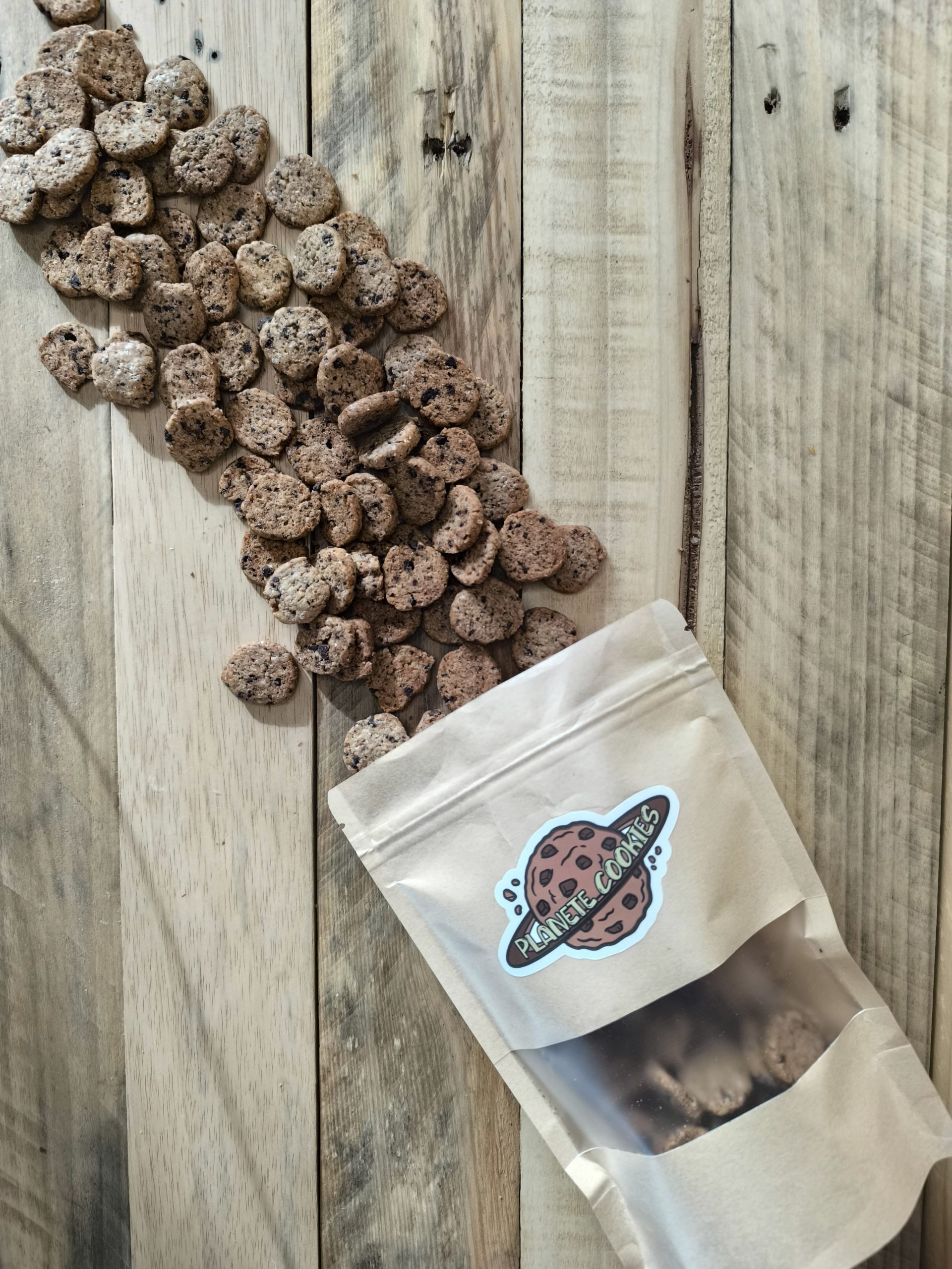 Une base vanille à la farine complète, sans sucres raffinés, des mini pépites de chocolat noir et vegan !